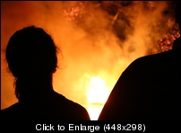We set the corpses on fire and stood watching them burn.