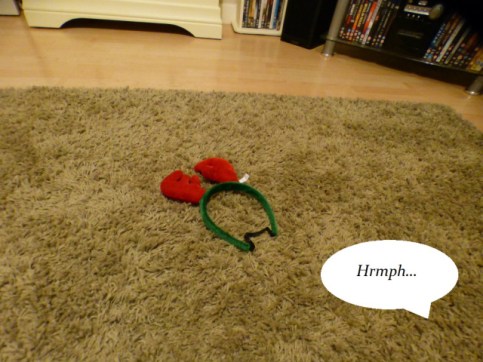 While everyone else is counting sleeps, I’m counting friends. She says it is just four more sleeps now till Christmas… I sleep a lot, so you can prob’bly add a naught onto that for me. But I have a friend here today and a dognity-saving friend tomorrow… and she says I can write Christmas Eve all by myself, but I was still one post short! I found something though… that was just right. I may have cheated a bit… but I really don’t want to wear the dreaded antlers again this year!