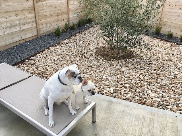 “Look at that flowerbed. Nice black stones. Collect the sun heat.”
