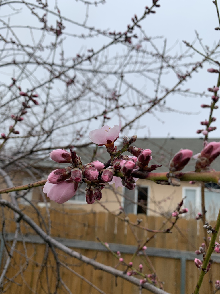 In light of current events, I’m sharing what little bits I can. In this year’s race toward Spring, it was neck and neck between the Asian pear tree and the flat peach tree.