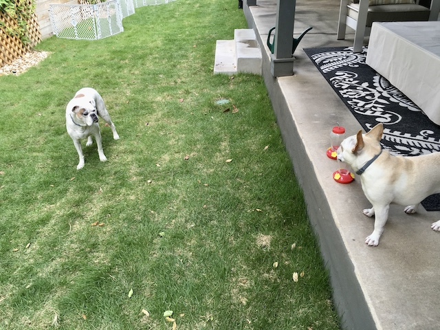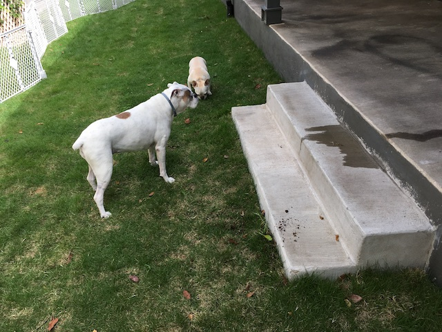 “I’m looking at this grass, Lucy. It looks a lot better than the new stuff.”